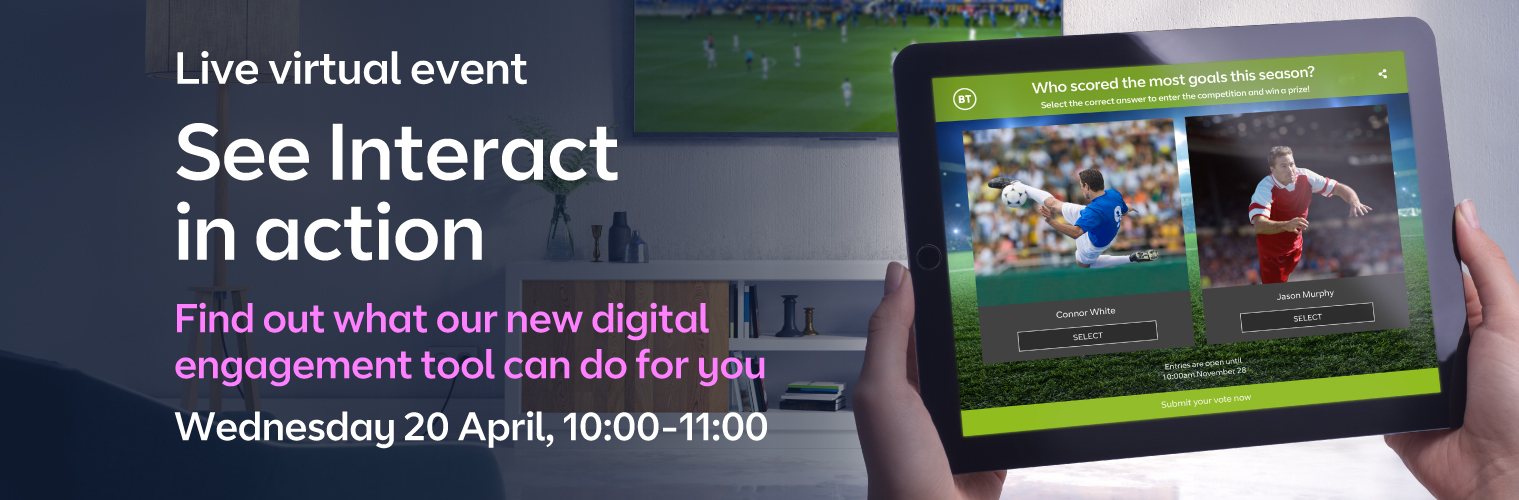 Plus we’ll be hearing from BT Sport and how they have used Interact to engage with their fans, as well as the new technologies that we’re developing to improve fan engagement for live broadcasts.